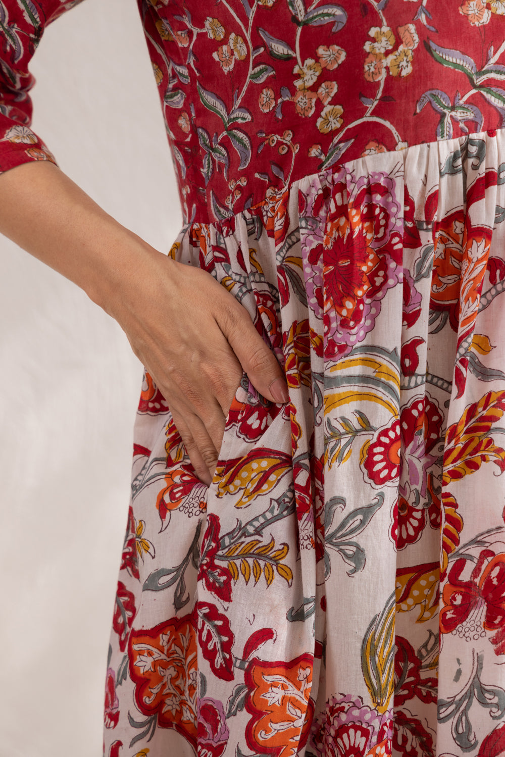 Cotton, with its soft and breathable nature, becomes even more special when paired with the art of hand block printing. This age-old craft brings life to the fabric, where skilled artisans carve intricate patterns onto wooden blocks and stamp them onto cotton by hand. The result is a unique blend of comfort and tradition — the natural ease of cotton combined with the cultural richness and individuality of hand block prints, making every piece timeless and full of character.